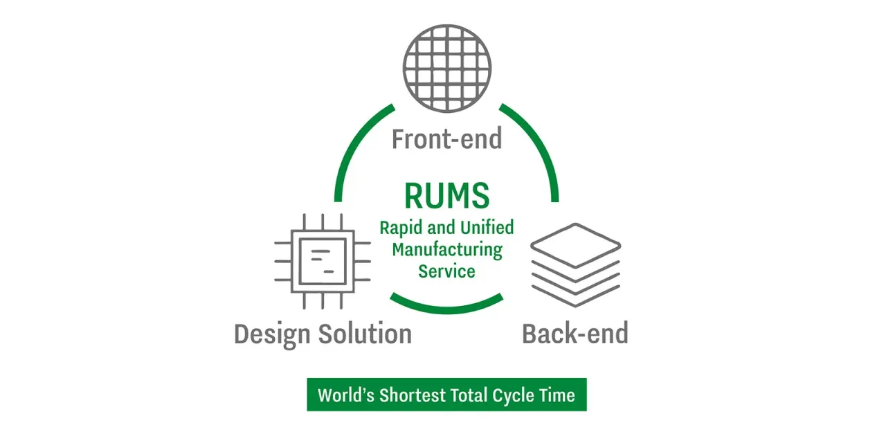 RUMS stands for Rapid and Unified Manufacturing Service, a production model that provides integrated support from design through front-end and back-end manufacturing.