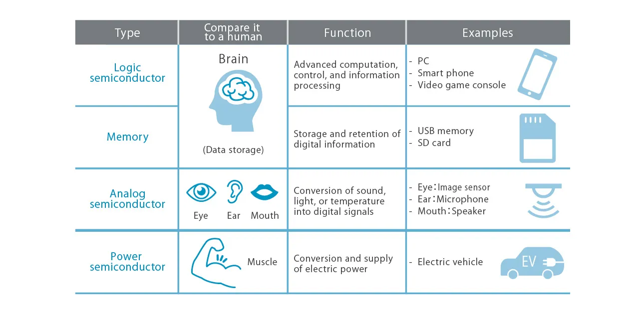 These perform logical operations and control tasks using transistors. Found in PCs, smartphones, appliances and cars, logic semiconductors are especially vital in AI, where GPUs logic chips excel. Rapidus is building its 2 nm logic chip manufacturing facility, called Innovative Integration for Manufacturing (IIM-1), in Chitose, Hokkaido. The company started its pilot line in 2025 with mass production to begin by 2027. -